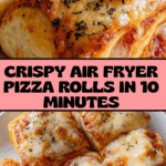 Keywords: Air fryer pizza rolls, crispy pizza rolls, easy pizza snack, mozzarella pizza rolls, pepperoni pizza rolls, quick appetizer