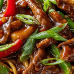 This Angel Hair Pasta with Chinese Beef Sauce combines tender ground beef, vibrant bell peppers, and aromatic garlic in a savory soy-based sauce. It’s a quick and flavorful dish that brings together the best of East Asian flavors with Italian pasta for a satisfying meal.