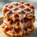 Delightfully crispy on the outside and tender on the inside, these Apple Fritter Waffle Donuts combine the best of classic apple fritters and waffles. Infused with warm spices, juicy tart apples, and optionally crunchy nuts, they are topped with a sweet vanilla glaze, making a perfect treat for breakfast or brunch.