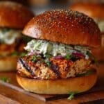 These aromatic prawn smash burgers combine bold spices with juicy king prawns, nestled in toasted brioche buns and served alongside crispy roasted potato chips. The patties are infused with a fragrant homemade spice blend featuring coriander, cumin, urucum, and fenugreek, delivering a vibrant and crunchy seafood burger experience. Finished with a fresh, zesty coriander and chili salad, mango chutney, and creamy mayo, this recipe offers an exciting twist on classic burgers perfect for a flavorful, satisfying meal.