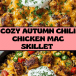 This Autumn Harvest Chili Chicken Mac Skillet is a comforting, hearty dish perfect for chilly evenings. Packed with tender chicken, smoky spices, and melty cheddar cheese, it combines the best of chili and mac and cheese in one easy skillet meal.