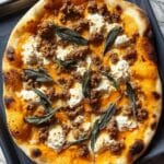 These Autumn Naan Pizzas bring cozy fall flavors to your table with a perfectly crispy and fluffy naan base topped with savory sausage, sweet caramelized shallots, creamy cheeses, and a hint of pumpkin and fresh herbs. Finished with a drizzle of hot honey for a spicy-sweet kick, this recipe is a delicious comfort food perfect for chilly days.
