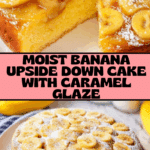 This Banana Upside Down Cake is a moist, flavorful dessert featuring a caramelized banana topping baked with a tender whole wheat and all-purpose flour cake. The cake incorporates bananas in both the topping and the batter, delivering rich banana flavor with a delightful caramel glaze. Finished with a soft crumb and a beautiful glossy banana layer on top, this cake is perfect for any occasion or a comforting treat.
