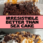 Keywords: Better Than Sex Cake, devil’s food cake, caramel cake, no-bake frosting, Heath bar dessert, easy chocolate cake recipe