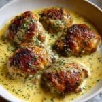 Bobby Flay’s Chicken Thighs with Creamy Garlic Sauce is a delicious and comforting dish featuring tender, bone-in chicken thighs seared to golden perfection and simmered in a rich, flavorful garlic cream sauce. This recipe combines simple ingredients like garlic, butter, heavy cream, and fresh parsley to create a savory sauce that perfectly complements the juicy chicken. Ideal for an easy yet elegant dinner.