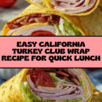 A delicious and easy-to-make California Turkey Club Wrap featuring tender deli turkey, crispy bacon, fresh avocado, tomato, lettuce, and a creamy spread wrapped in a warm flour tortilla. Perfect for a quick lunch or light dinner, this wrap combines savory and fresh flavors with a satisfying crunch.