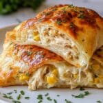Cheesy Chicken Crescent Rolls are a delightful comfort food snack featuring a flaky crescent roll dough filled with a creamy mixture of shredded chicken, cream cheese, cheddar cheese, and flavorful seasonings. Perfect as a tasty appetizer or a satisfying snack, these rolls combine savory elements with a golden, baked crust for an irresistible treat.
