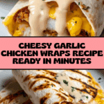 Cheesy Garlic Chicken Wraps are a quick and satisfying meal perfect for lunch or dinner. With tender shredded chicken blended with garlic aioli and melted cheddar cheese, these wraps offer a deliciously creamy and savory bite every time.