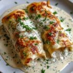 Chicken Alfredo Lasagna Rolls combine tender shredded chicken, creamy ricotta, rich Alfredo sauce, and gooey cheeses rolled inside tender lasagna noodles. Baked to bubbly perfection and garnished with fresh parsley, this comforting Italian-American dish is a flavorful twist on traditional lasagna that’s perfect for an indulgent family dinner.