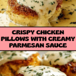 Chicken Pillows with Creamy Parmesan Sauce are a cozy, comforting dish featuring flaky crescent roll dough stuffed with a creamy chicken and cream cheese filling, baked until golden and crispy, then topped with a luscious homemade Parmesan sauce. Perfect for an easy yet indulgent weeknight dinner or a hearty appetizer.