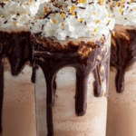 This cocktail is best enjoyed fresh. If you have leftovers, store the liquid part in an airtight container in the refrigerator for up to 24 hours. Reheat gently and stir before serving, then add fresh whipped cream and toppings. The ganache can be refrigerated separately for up to 3 days and reheated gently to dip another glass.