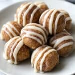 Keywords: Cinnamon roll bites, protein bites, healthy snacks, no bake snacks, protein balls, almond flour recipes, cinnamon snacks