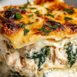 This Creamy Chicken and Spinach Casserole is a hearty, comforting dish featuring tender shredded rotisserie chicken, sautéed onions and garlic, creamy cheese sauce, and nutritious spinach, all baked to perfection with a cheesy golden topping. Ideal for family dinners, it combines simple ingredients into a flavorful casserole that’s both satisfying and easy to prepare.