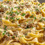 This stovetop creamy ground beef pasta is a comforting and quick meal perfect for busy weeknights. With tender ground beef, rich cream, and melted cheese, it comes together in one pot for easy cooking and cleanup.