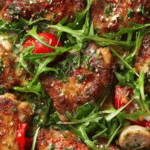 This Creamy Mediterranean Chicken Skillet is a flavorful one-pan meal that’s perfect for busy weeknights. Juicy chicken breasts are cooked with mushrooms, spinach, and tomatoes in a rich, creamy sauce infused with herbs and capers. It’s easy to prepare and makes great leftovers for lunch the next day.