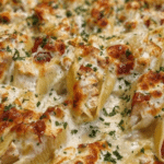 Creamy Seafood Stuffed Shells are a decadent Italian-inspired dish featuring large pasta shells filled with a rich and flavorful seafood mixture, baked in a luscious cream sauce and topped with melted cheese. Perfect for a comforting dinner that combines tender pasta, savory seafood, and creamy cheese, delivering a deliciously satisfying meal.