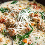 This Creamy Tuscan Chicken Soup combines tender chicken, savory broth, and a rich, cheesy cream base to create a comforting meal perfect for any day. Packed with spinach and sun-dried tomatoes, it offers a delightful blend of flavors that will warm you from the inside out.