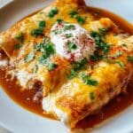 These delicious chicken enchiladas combine tender shredded chicken with zesty red enchilada sauce and melted Monterey Jack cheese, all wrapped in soft flour tortillas and baked to perfection. Perfectly seasoned with cumin and chili powder, these enchiladas offer a comforting and flavorful meal that’s easy to prepare and sure to satisfy.