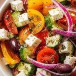 This easy Greek salad is a fresh and vibrant dish, perfect for warm weather or as a colorful side. Made with crisp vegetables, tangy feta, and a simple homemade dressing, it brings authentic Mediterranean flavors to your table in minutes.