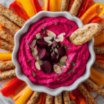 Fresh Beet Hummus is a vibrant twist on a classic favorite, combining the earthy sweetness of beets with creamy chickpeas and tangy feta. It’s a deliciously colorful appetizer that’s perfect for snacking or entertaining.