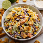 Frito Cowboy Cabbage is a vibrant and flavorful no-cook salad combining coleslaw mix, black beans, corn, jalapeño, and a zesty chipotle dressing. Enhanced by the crunch and cheesy flavor of Chili Cheese Fritos, this recipe offers a perfect balance of creamy, spicy, and crunchy textures ideal for a quick side dish or light meal.
