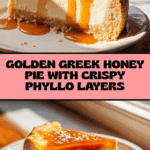 Golden Greek Honey Pie is a traditional Greek dessert featuring layers of crispy phyllo dough filled with a creamy semolina custard, infused with warm spices like cinnamon and nutmeg, and topped with sweet honey and toasted sesame seeds. This indulgent yet elegant pie offers a perfect balance of textures and flavors, ideal for festive occasions or a special treat.