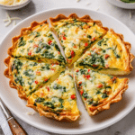 This High-Protein Tortilla Quiche is a delicious and nutritious meal perfect for breakfast, brunch, or a light dinner. Featuring a crispy tortilla crust filled with a fluffy egg mixture, cottage cheese, fresh spinach, red bell pepper, and melted cheese, this quiche combines protein and veggies in a convenient, easy-to-make dish that bakes quickly in the oven.