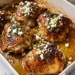 Store leftover Hot Honey Feta Chicken in an airtight container in the refrigerator for up to 3 days. To reheat, warm gently in the oven at 300°F (150°C) until heated through or microwave on medium power, covering loosely to retain moisture.