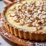 This classic Italian dessert, Torta Della Nonna, features a buttery pasta frolla tart filled with rich and creamy homemade custard, topped with crunchy pine nuts and a dusting of powdered sugar. A perfect balance of textures and flavors, this traditional treat is an elegant yet approachable baking project.