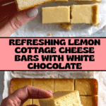 Keywords: lemon dessert, cottage cheese bars, healthy lemon bars, protein bars, low fat dessert, almond flour dessert, lemon bars with white chocolate