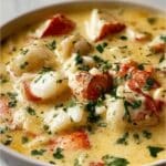 This Lobster Pot Pie is a rich and comforting seafood dish featuring tender lobster meat simmered with fresh vegetables in a creamy sauce, all encased in a flaky, golden pie crust. Perfect for a special dinner, it combines the luxury of lobster with the homestyle charm of a classic pot pie.