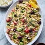 Keywords: Greek orzo salad, Mediterranean salad, feta salad, orzo pasta salad, vegetarian salad, easy dinner, meal prep salad