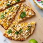 - Serve: Slice the flatbread into servings, drizzle with the prepared elote sauce, and serve warm for a flavorful Mexican-inspired meal or snack.