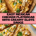 Keywords: Mexican chicken flatbread, elote sauce, flatbread pizza, quick Mexican recipe, cheesy flatbread, baked flatbread, Mexican street food, easy dinner, chicken pizza