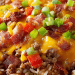 This Onion Ground Beef and Rice Casserole Delight is a comforting and easy-to-make meal perfect for busy weeknights. Combining savory ground beef, flavorful French onion soup, and creamy cheese, it delivers warmth and satisfaction in every bite.