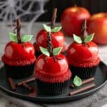 Poison Apple Cupcakes are a delightfully spooky and sinfully delicious treat perfect for Halloween celebrations. These rich chocolate cupcakes are filled with gooey caramel, topped with a glossy red glaze that mimics a shiny, sinister apple, and decorated with green candy leaves and pretzel or lollipop stick stems to complete the eerie apple look. Perfect for impressing guests with both flavor and creative presentation.