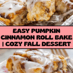 A delicious and comforting Pumpkin Cinnamon Roll Bake that transforms classic cinnamon rolls into a festive autumn dessert. This recipe combines pumpkin puree and warm spices with refrigerated cinnamon roll dough, baked to golden perfection and topped with a creamy glaze. Perfect for breakfast or a cozy treat during the fall season.