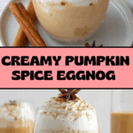 Keywords: pumpkin spice eggnog, pumpkin eggnog, holiday drinks, fall beverage, pumpkin purée eggnog, creamy eggnog, festive drinks