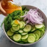 - Add Onion and Dill: Incorporate the thinly sliced red onions and chopped fresh dill into the cucumber mixture, stirring gently to combine.