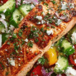 This Salmon with Basil Sauce and Tomato Salad recipe combines tender, perfectly baked salmon with a vibrant, creamy basil sauce and a fresh tomato salad. It’s a simple yet flavorful meal that’s great for weeknight dinners or casual entertaining.