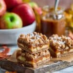Keywords: Salted caramel, apple crisp bars, autumn dessert, caramel apple bars, baked dessert, oat crust