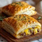 These Savory Breakfast Pop-Tarts combine flaky homemade pastry dough with a rich sausage gravy filling and fluffy scrambled eggs, topped with melted cheese and seasoning for a hearty and satisfying morning treat.