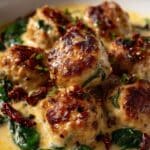 These Southern Style Baked Chicken Ricotta Meatballs with Spinach Alfredo Sauce offer a comforting, flavorful twist on classic meatballs. Tender ground chicken is combined with creamy ricotta and spinach, baked to perfection, and smothered in a rich, garlicky spinach Alfredo sauce. This dish is perfect for a cozy family dinner that’s both satisfying and elegant.