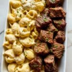 Steak Bites with Shell Pasta in Garlic Butter Alfredo Recipe