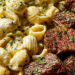 This Steak Bites and Shell Pasta in Garlic Butter Alfredo Sauce combines tender, flavorful steak pieces with creamy, rich pasta for a satisfying meal. It’s a perfect dish for those who love hearty comfort food with a touch of elegance.