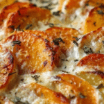 This Sweet Potato Bake is a comforting and elegant side dish featuring tender, thinly sliced sweet potatoes infused with garlic and rosemary. Baked to golden perfection, it’s an easy way to elevate simple ingredients into something special for any meal.