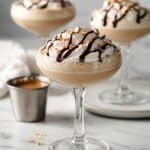 - Garnish and finish: Pipe the prepared Irish whipped cream on top of each cocktail. Garnish with crushed hazelnuts, graham cracker crumbs, and a drizzle of chocolate sauce. Serve immediately and enjoy.